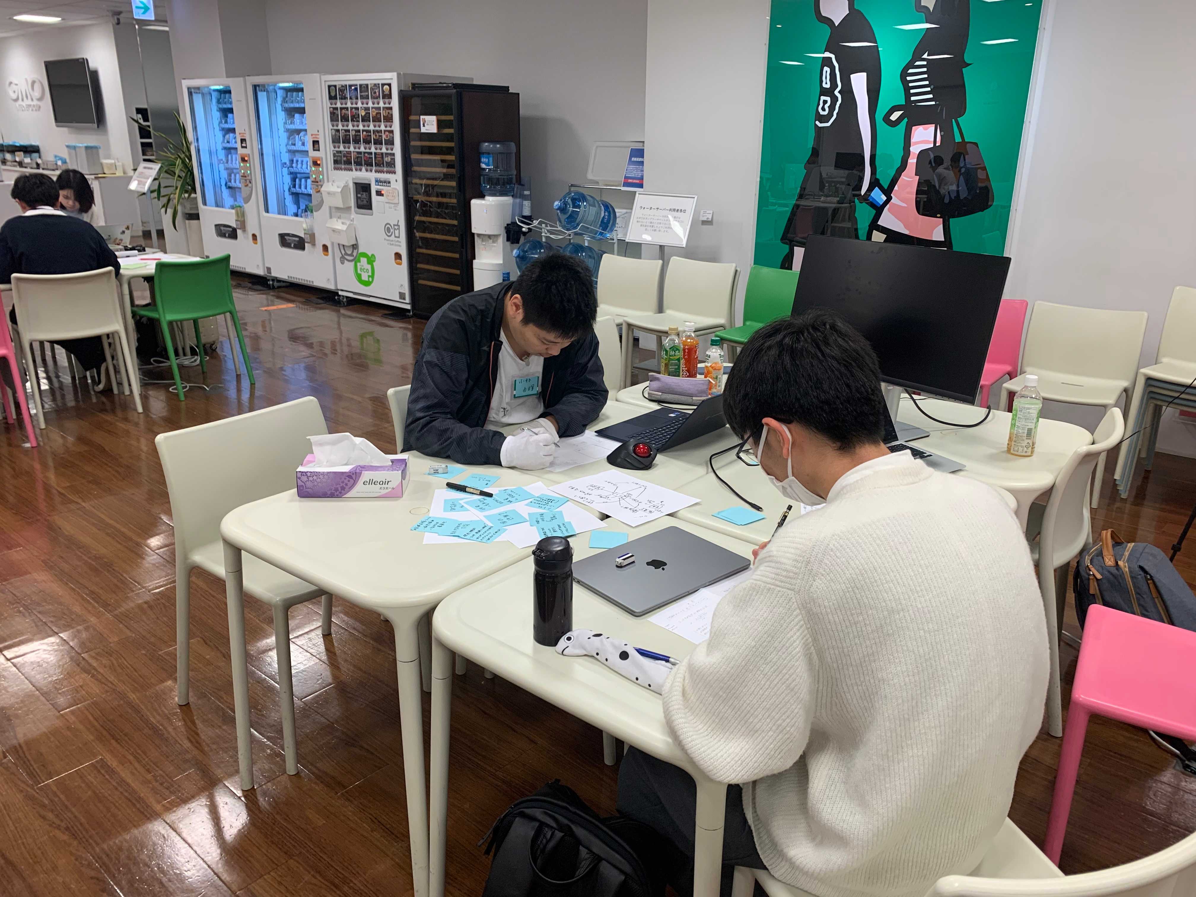 1 日目は、チームを組んで、アイディアを出し合いました。どのチームも、熱心に議論を重ねていました。